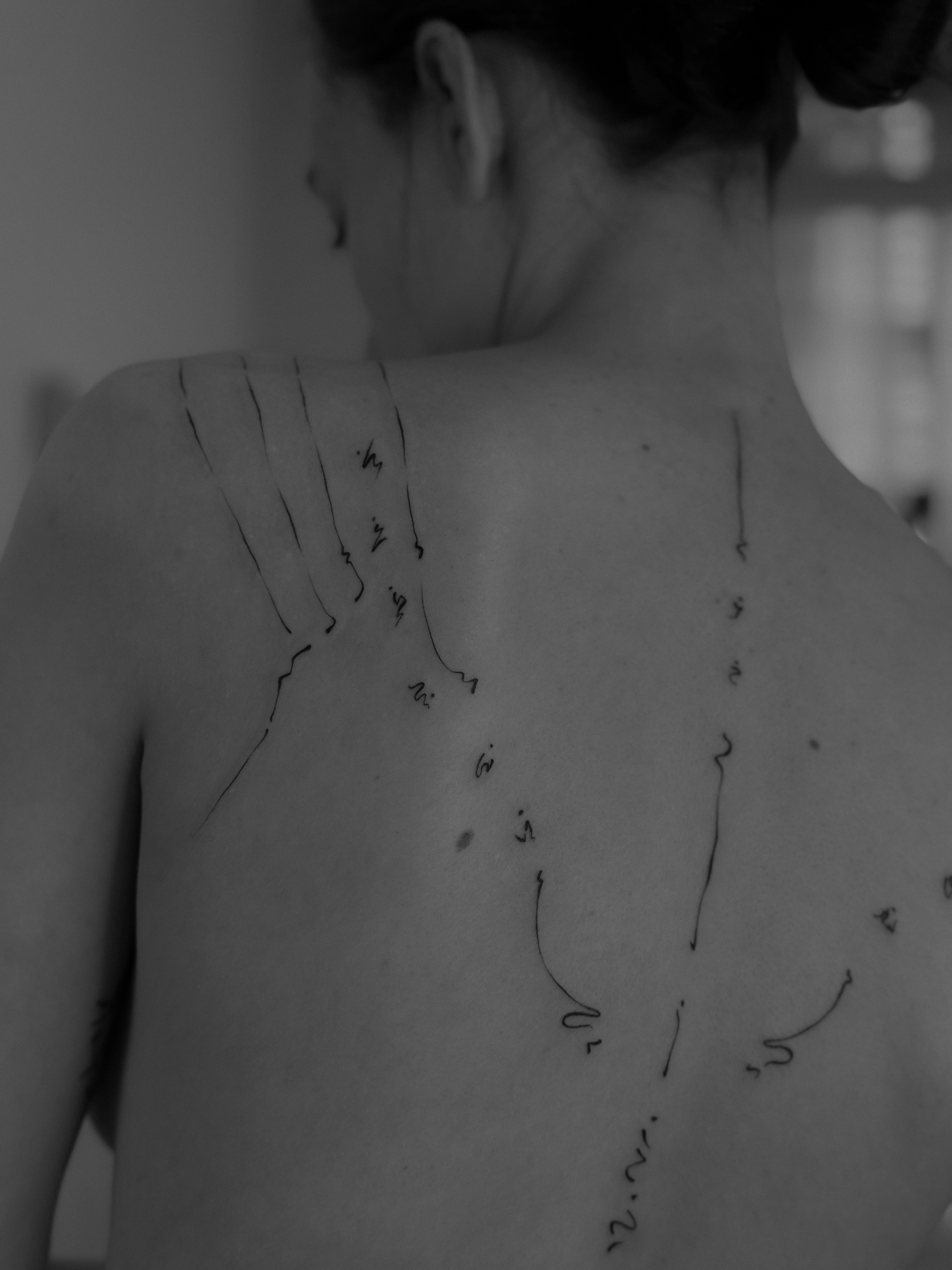 Cada diseño es personalizado e íntimo, entretejiendo simbolismo con una elegancia sutil. Naya trabaja exclusivamente con cita previa, enfocándose en tatuajes personalizados creados con atención y cuidado.